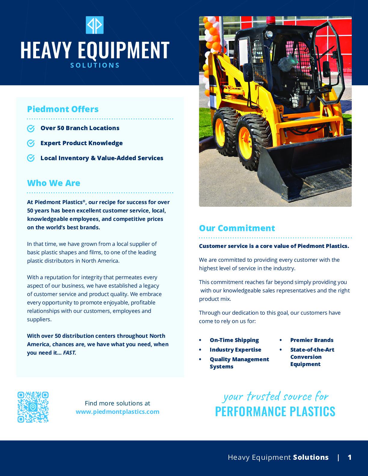 Piedmont Plastics stocks a wide range of products for every heavy equipment window replacement project and employs knowledgeable and experienced professionals that have access to specified products and can assist in choosing ideal materials for various applications.