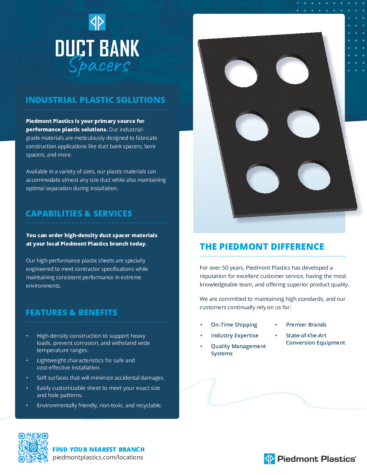 Piedmont Plastics’ building and construction products are the perfect choice for both commercial and domestic applications ranging from the areas of roofing, wallcoverings, and partitions, to glazing, cladding, reception areas, and security. If aesthetics, strength, light transmission, and long-term performance are needed, performance plastics can provide it.