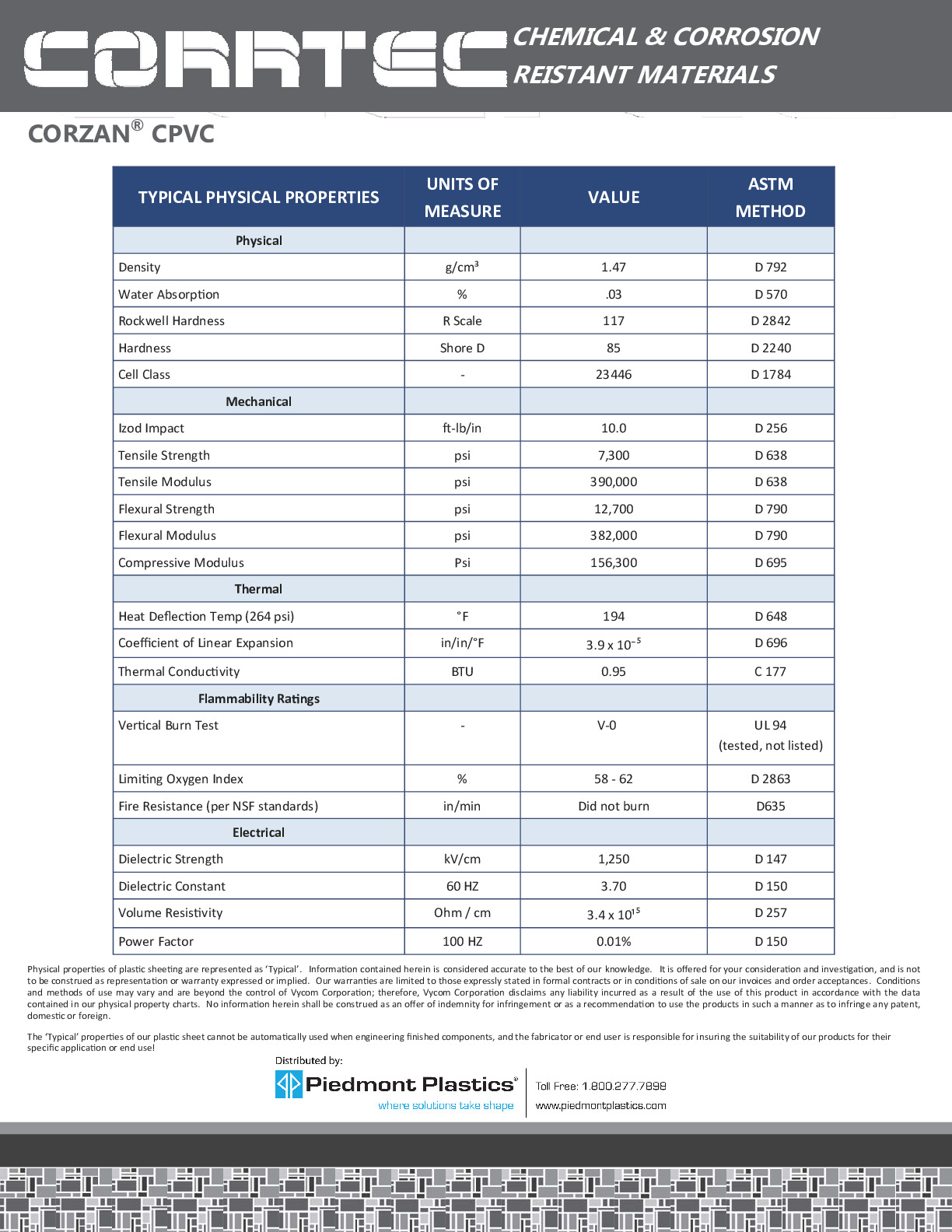 At Piedmont Plastics, we're more than just a plastic distributor. We provide reliable solutions tailored to your toughest application demands. Here’s why CPVC from Piedmont is the right choice for your project: