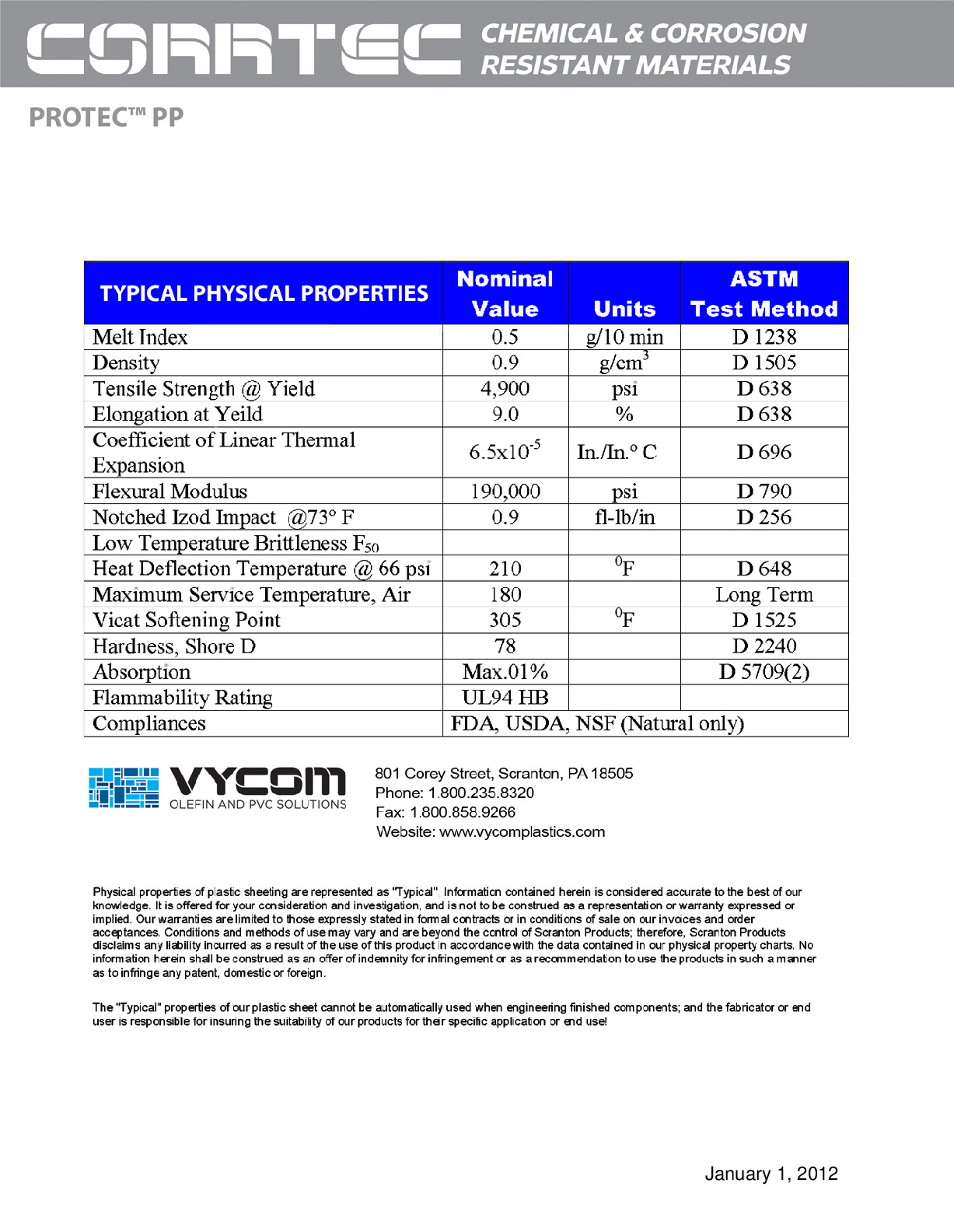 Typical Properties of Polypropylene