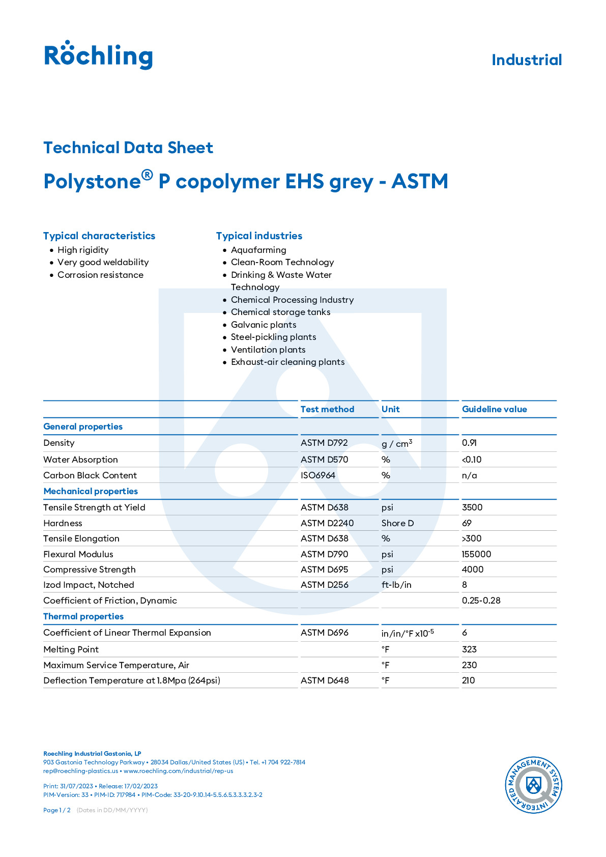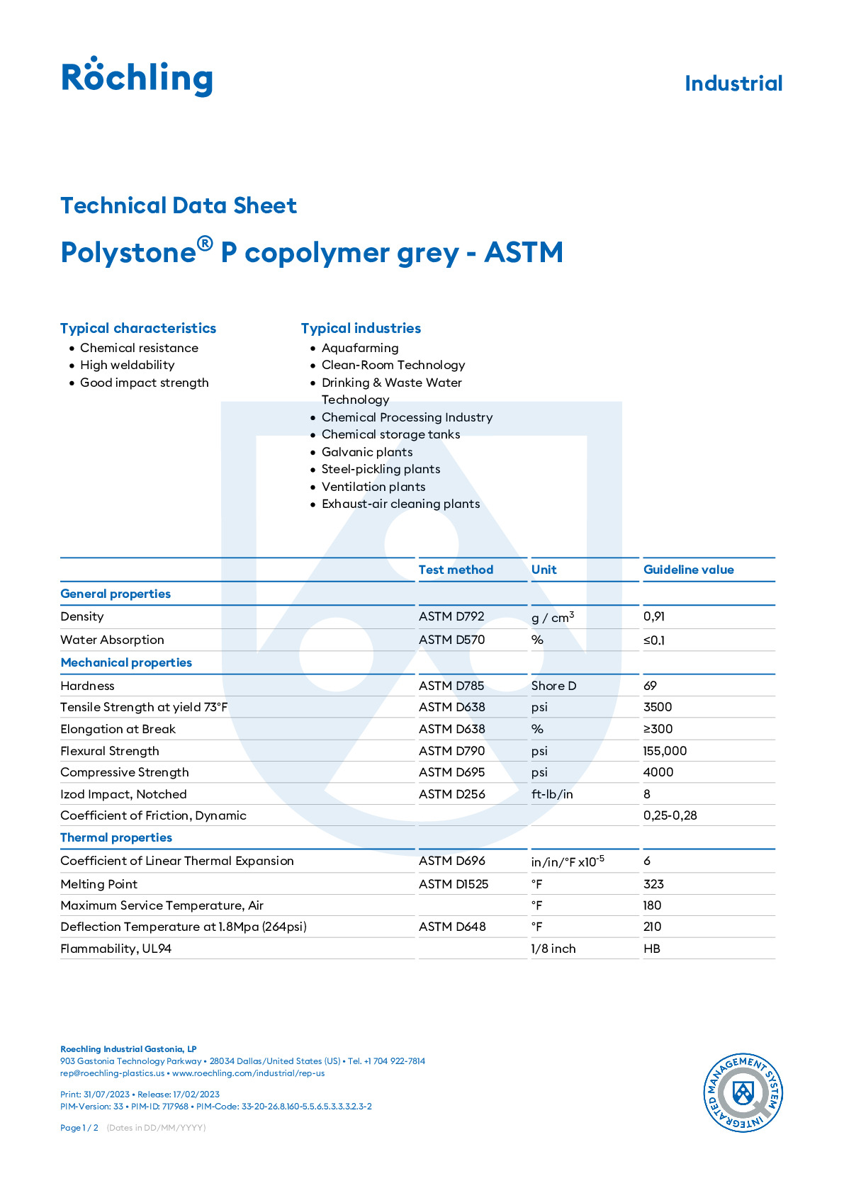 Polystone P copolymer natural - ASTM Röchling Engineering Plastics -