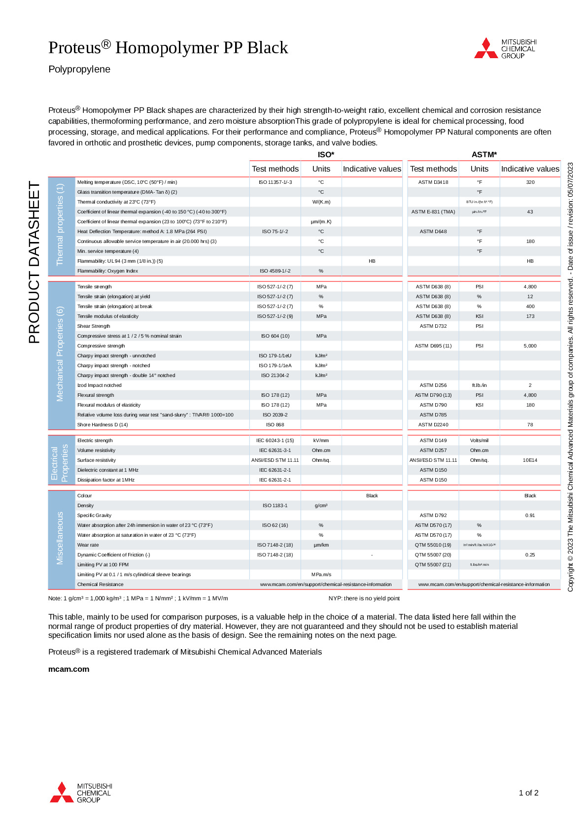 Proteus Homopolymer PP Natural Mitsubishi Chemical Group -