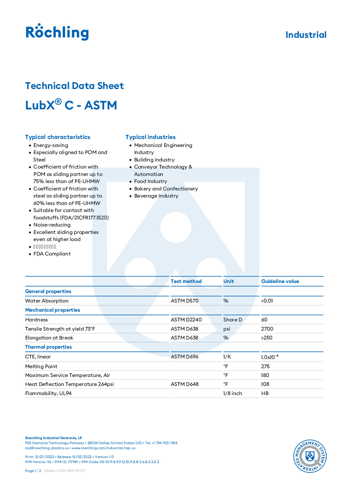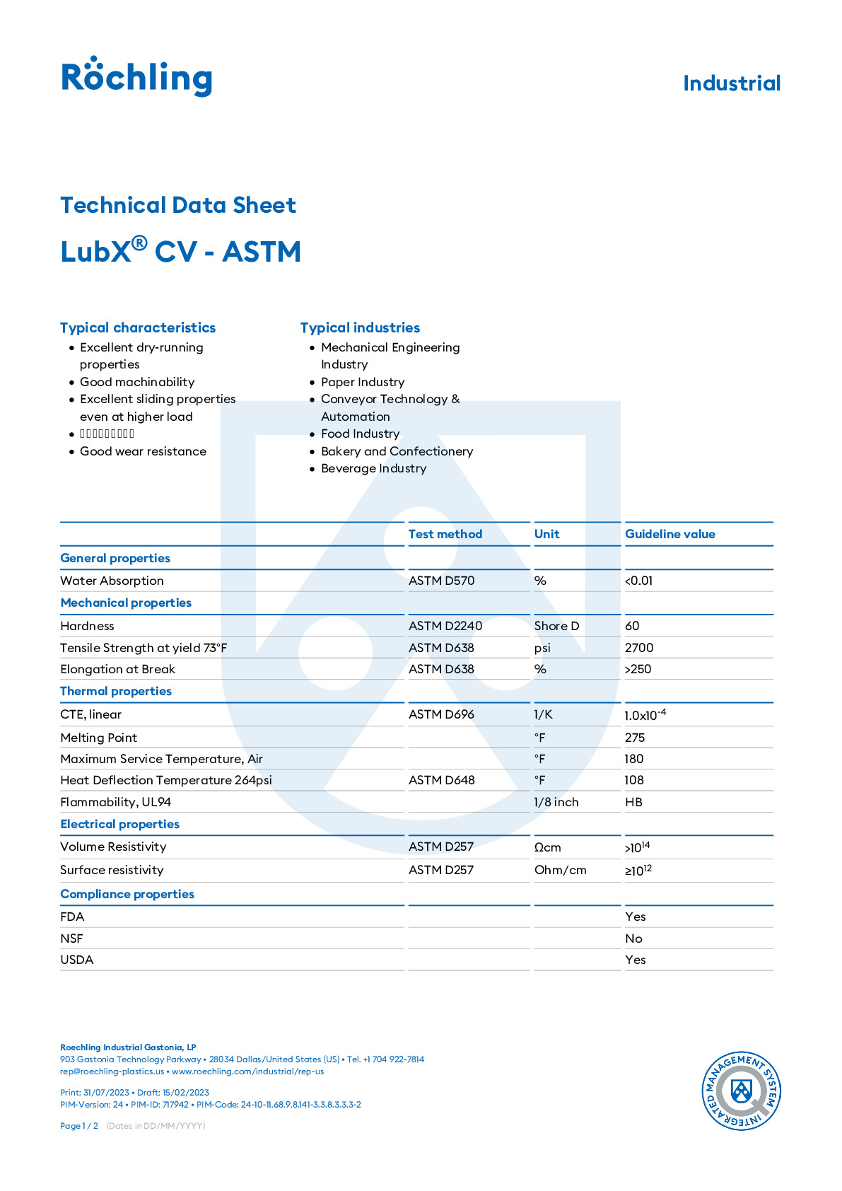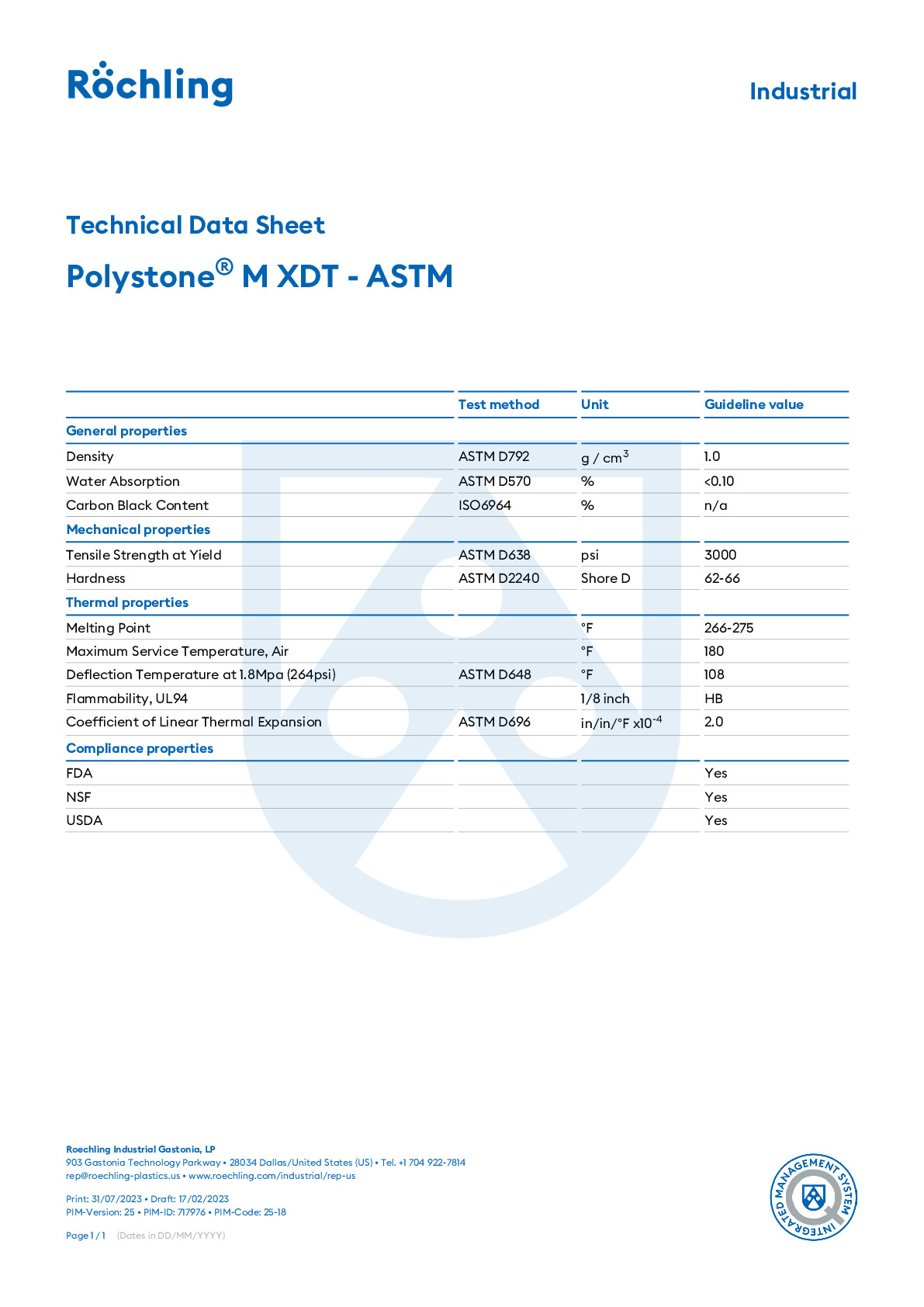 Polystone M XDT - ASTM Röchling Engineering Plastics -