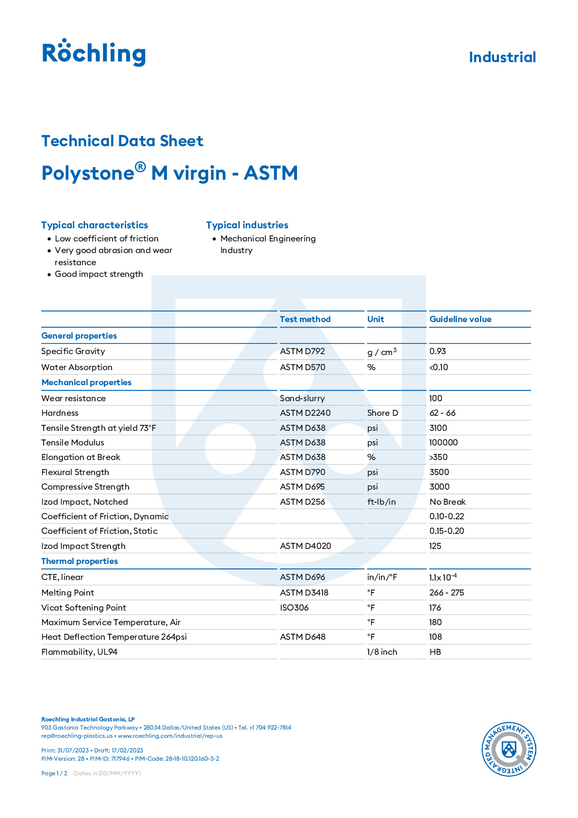 Polystone M virgin - ASTM Röchling Engineering Plastics -