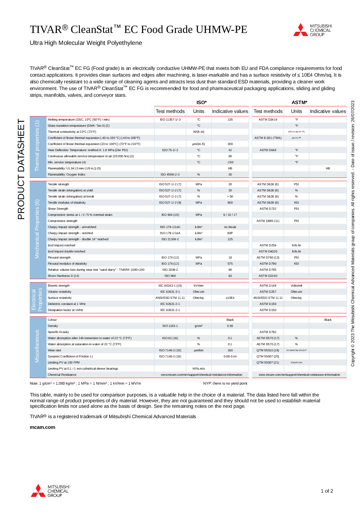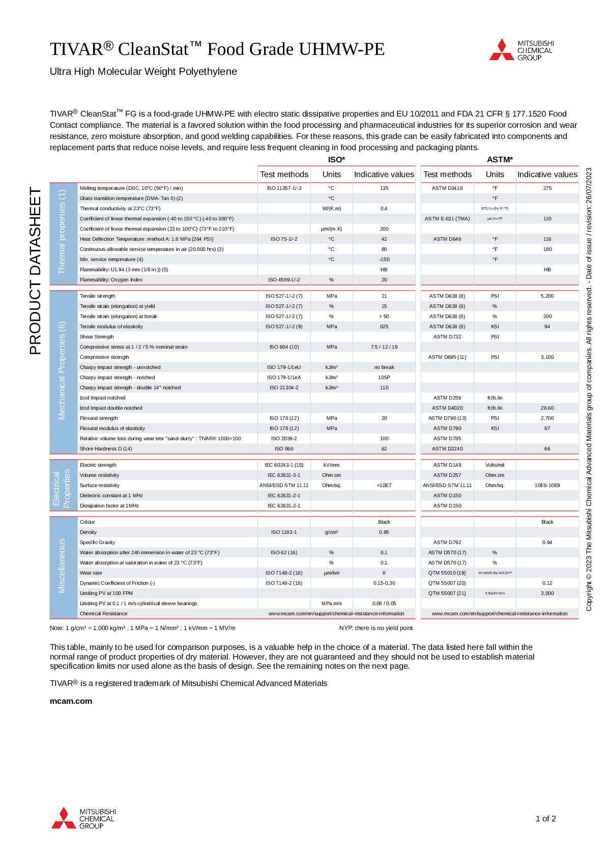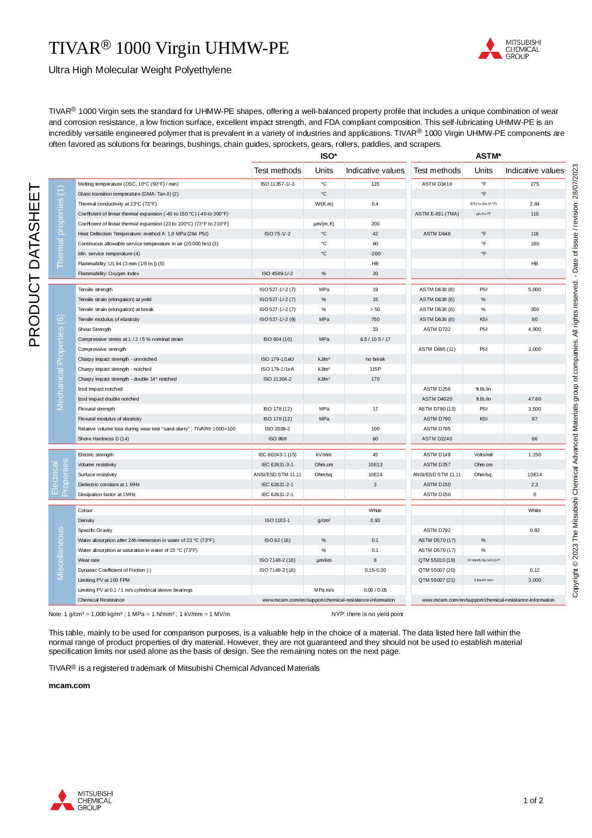MCAM TIVAR® MD UHMW-PE Mitsubishi Chemical Group -