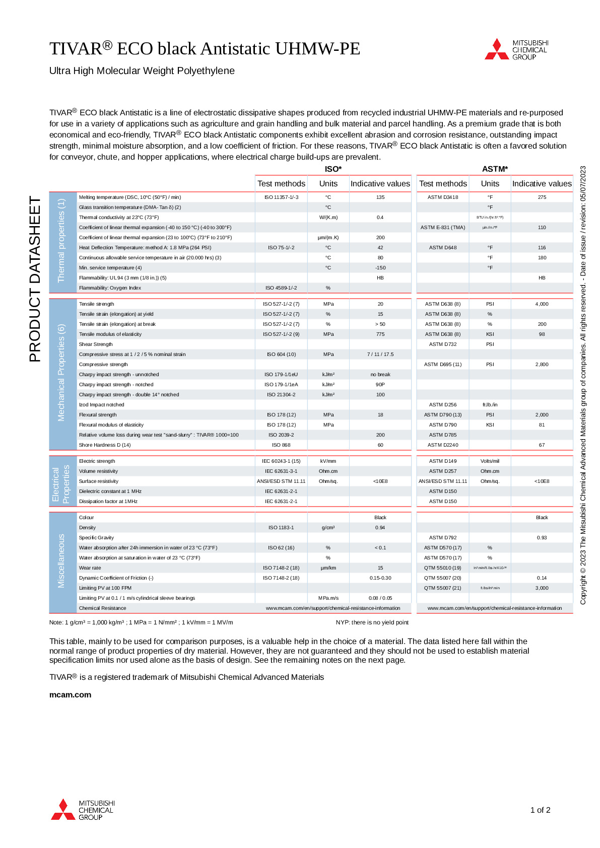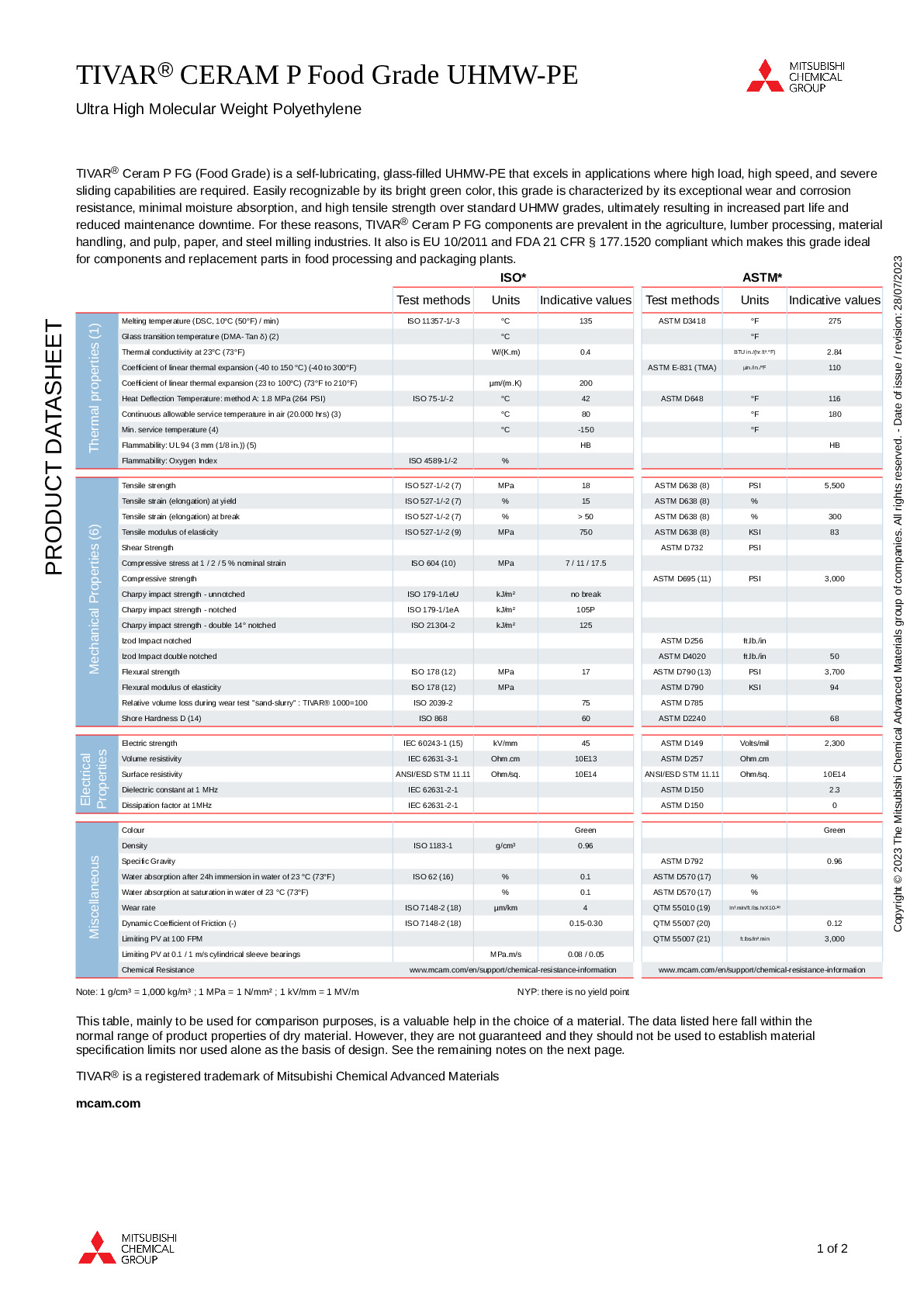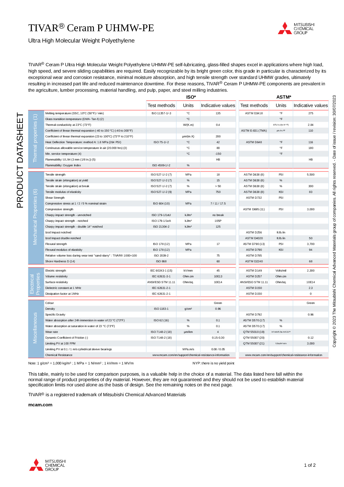 MCAM TIVAR® MD UHMW-PE Mitsubishi Chemical Group -