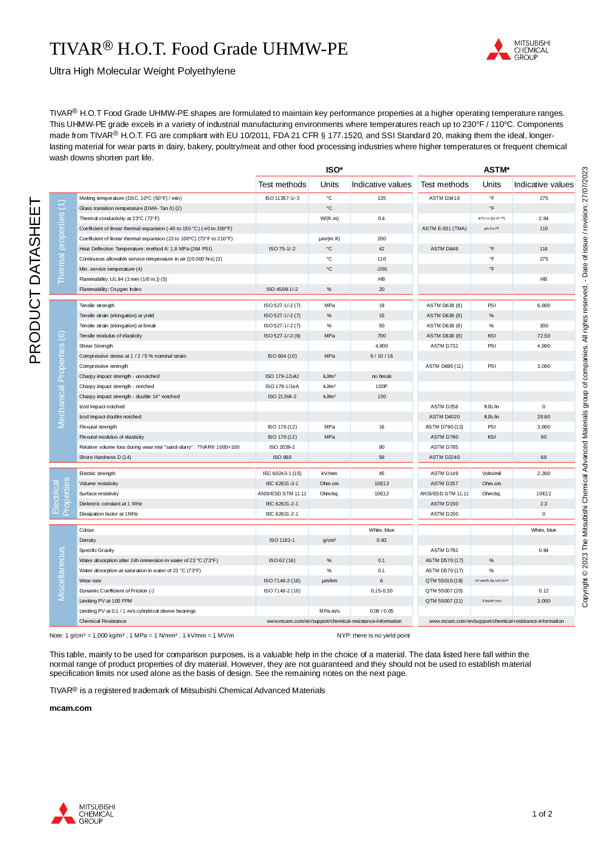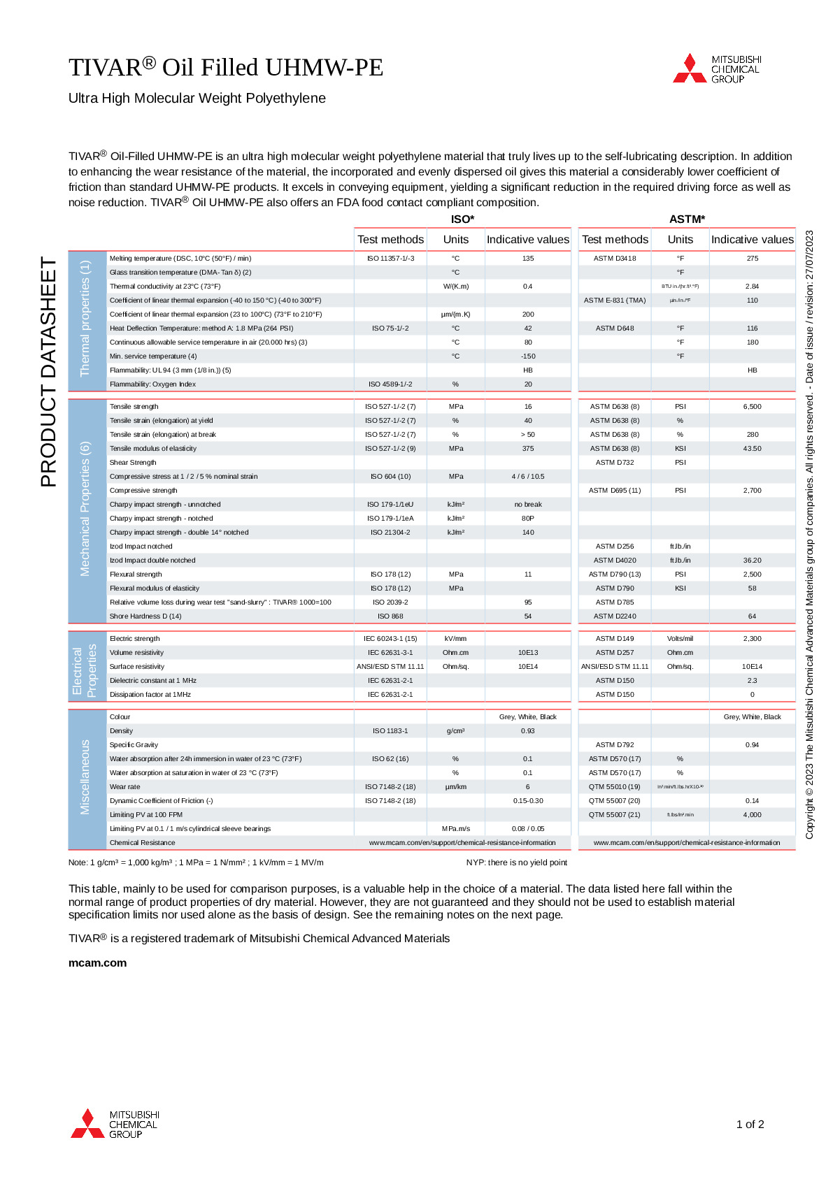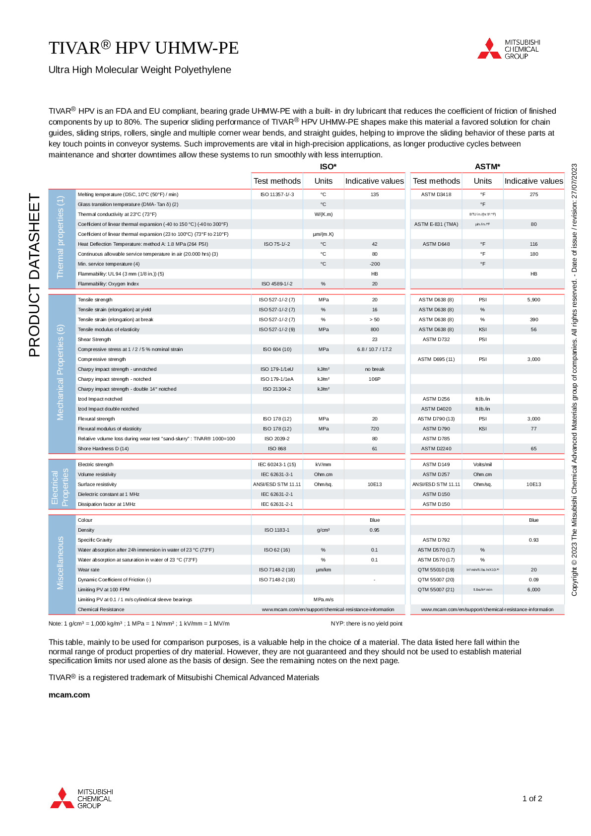 MCAM TIVAR® H.O.T. UHMW-PE Mitsubishi Chemical Group -