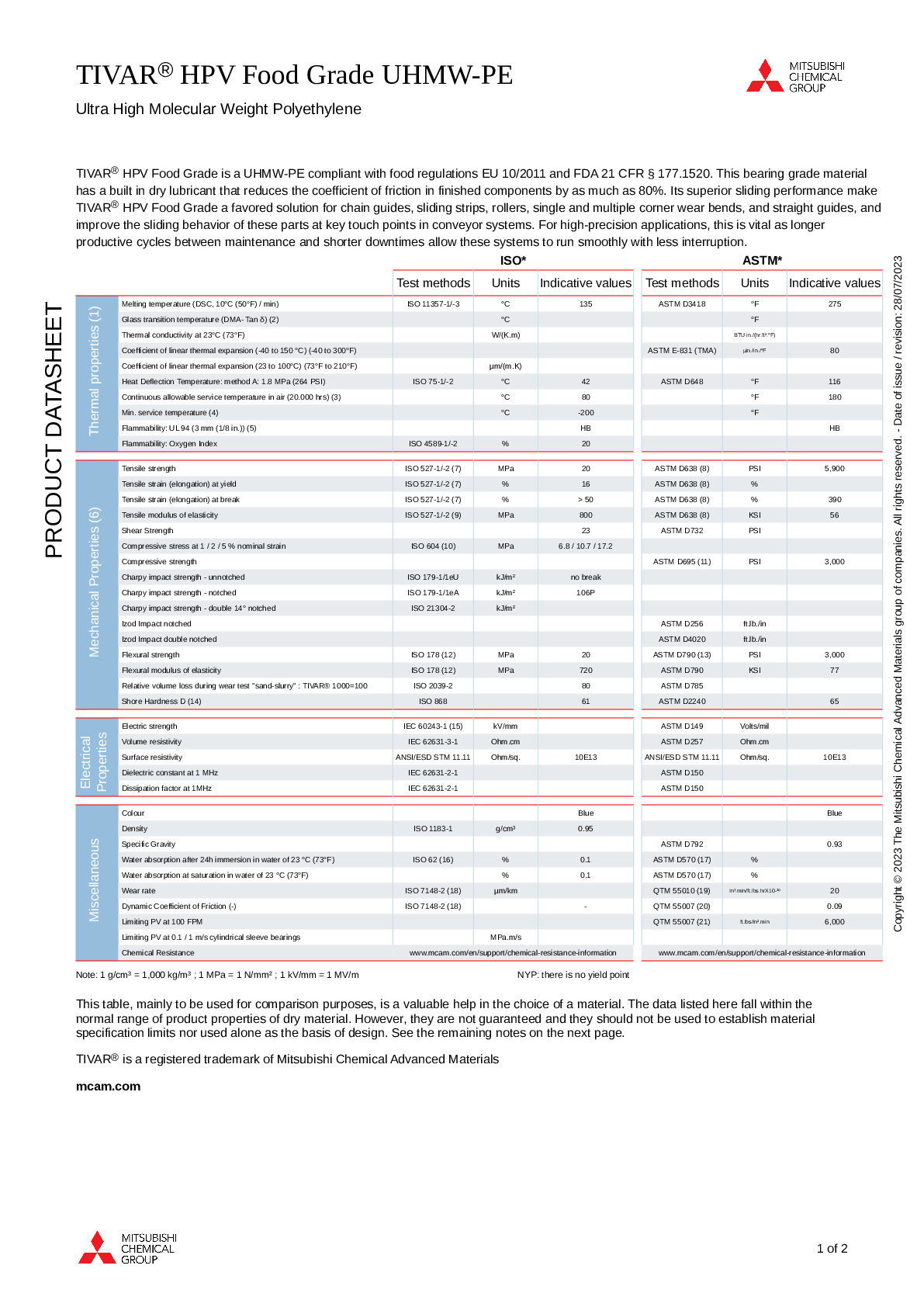 MCAM TIVAR® HPV FG UHMW-PE Mitsubishi Chemical Group -
